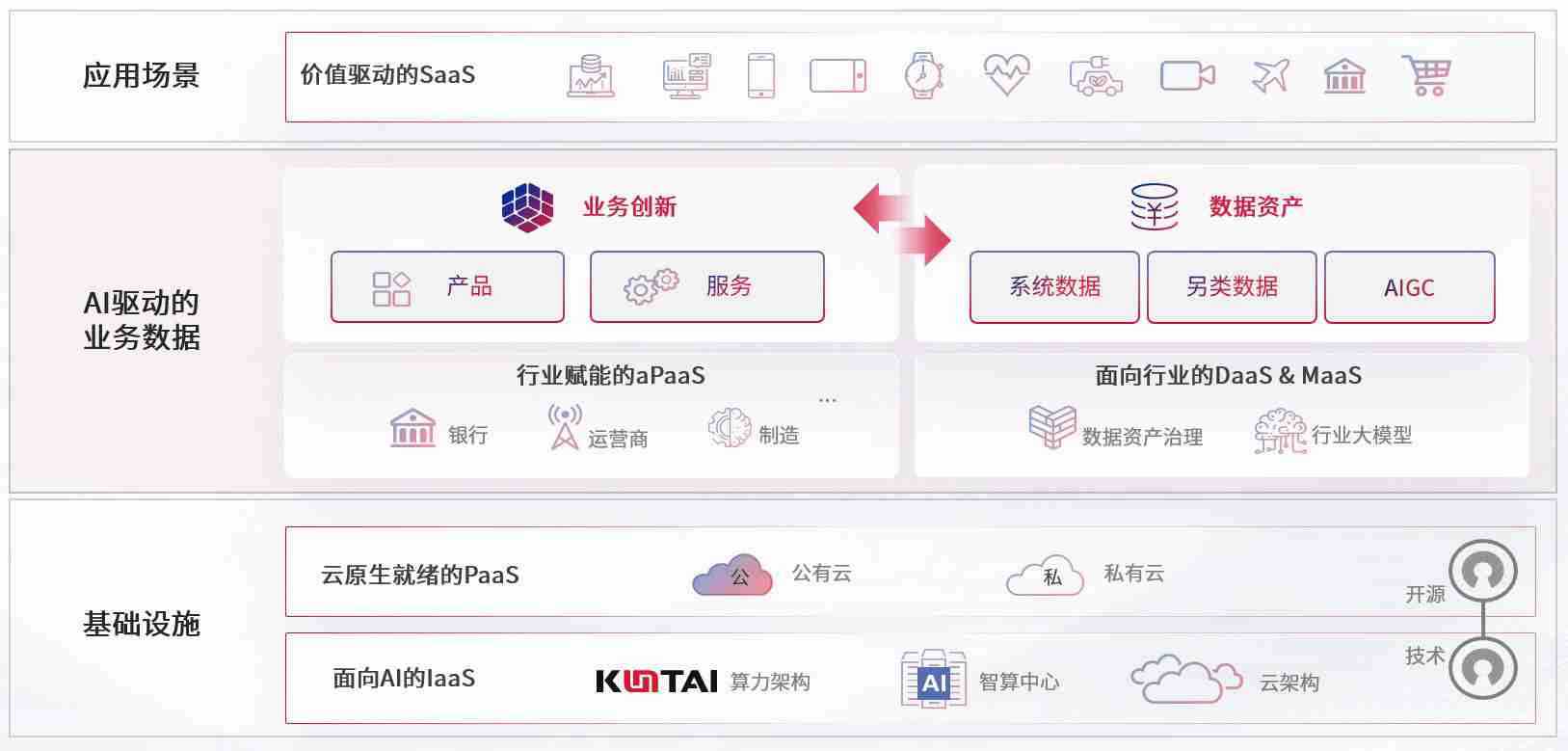 数字时代,,围绕企业数字化转型的关键要素,,,,大资本210cc数码开创性的提出数云融合战略和技术体系框架,,着力在云原生、、数字原生、、AI原生和信创产业上架构产品和服务能力,,为处在不同数字化转型阶段的快消零售、、、、汽车、、、金融、、医疗、、、、政企、、、教育、、运营商等行业客户提供泛在的敏捷IT能力和融合的数据驱动能力,,,,构建跨界融合创新的数字业务场景和新业务模式,,,,助力企业级客户建立面向未来的核心能力和竞争优势,,全面推动社会的数字化、、智能化转型升级。。。