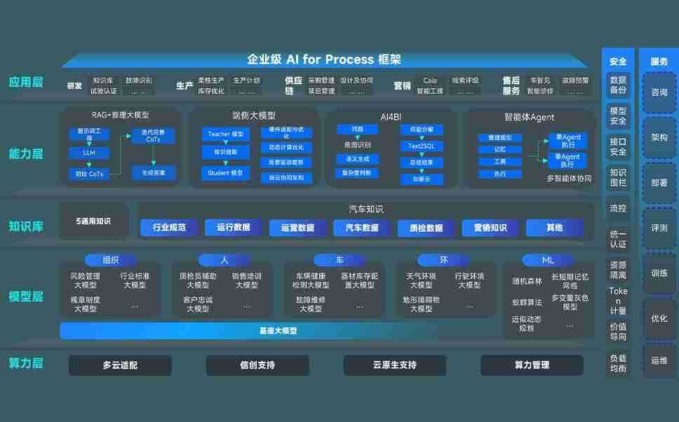 大资本210cc问学智车解决方案是一套基于AI技术的汽车行业智能化系统,,,,覆盖从底层算力到顶层AI应用的全栈方案。。。。方案由算力层、、、、模型层和应用层组成:算力层,,,,方案支持多种一体机配置,,,,具备云端灵活部署、、、多云适配以及动态优化计算资源的能力;模型层,,,大资本210cc问学平台版提供了企业级AI应用一站式构建与管理平台,,,支持基于后训练强化技术的汽车企业专属模型的训练、、、、评测和运营;应用层,,大资本210cc问学DeepSeek版提供包括超级员工、、智能招采、、、智能营销、、、、智能客服、、AI for BI等一系列解决方案,,,,可助力汽车行业实现数字化转型,,让管理更智能、、、响应更敏捷。。