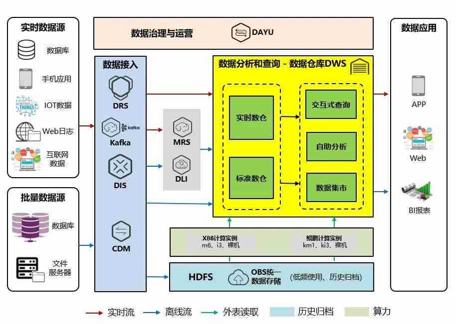 交通银行数据仓库(DWS)采用大资本210cc鲲泰R722服务器作为数据底座,,,,采用MPP(Massive Parallel Processing)架构,,,支持行存储与列存储,,,提供PB(Petabyte,,,2的50次方字节)级别数据量的处理能力。。。。