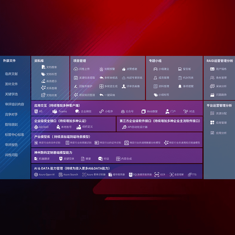医疗器械产品上市前,,,要熟悉严格与繁复评审标准,,,,整理分析监管机构指导文件中的海量信息。。企业急需一个智能化解决方案,,,,提升知识管理效率,,,,提高评审通过率,,,,以提升其市场竞争力。。